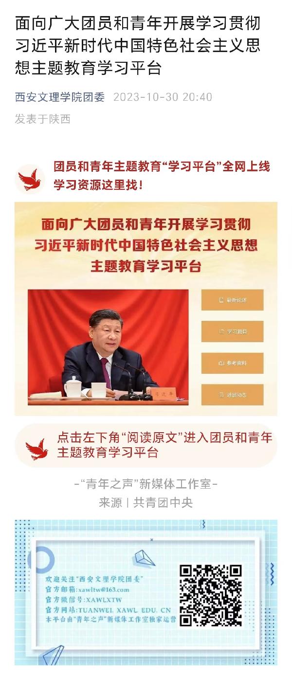 面向广大团员和青年开展学习贯彻习近平新时代中国特色社会主义思想主题教育学习平台