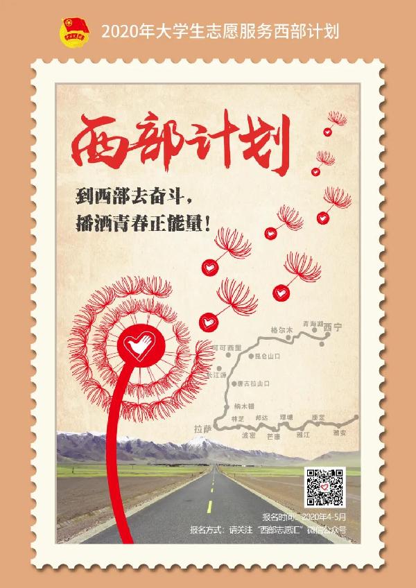 4月10日至5月31日,2020年普通高等学校应届毕业生或在读研究生可通过微信公众号“西部志愿汇”(菜单栏中的“我要报名”)或登录西部计划官网(http://xibu.youth.cn),在西部计划报名系统中进行注册报名。