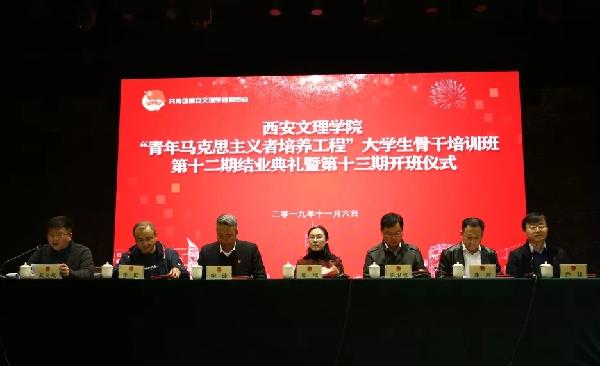 11月6日下午16:30,我校“青年马克思主义者培养工程”大学生骨干培训班第十二期结业典礼暨第十三期开班仪式在大礼堂隆重举行。