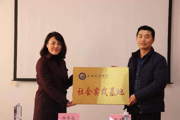 校团委书记仲华志和四方华能总经理范彦峰共同为实践基地授牌。机关第三党总支书记张晓霞与范彦峰总经理互赠礼物。
