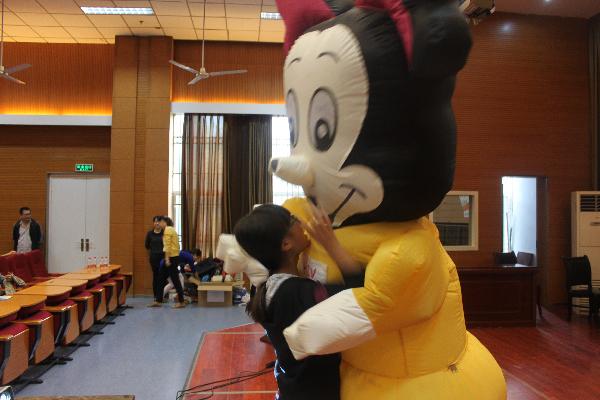 随后,市疾控中心安排三位艾滋病防治工作人员从艾滋病流行态势及基本知识、生动的案例及如何预防艾滋病方面做了详尽的讲解。并通过“换水游戏”强调多性伴、频繁的性行为会导致艾滋病感染危险性明显增加。最后,活动开展了艾滋病有奖知识问答及与艾滋病感染者的卡通气模进行了互动拥抱,目的是为了让同学们对艾滋病基本知识有更为深入的了解,让同学们在面对HIV/AIDS时不惧怕,正确面对。