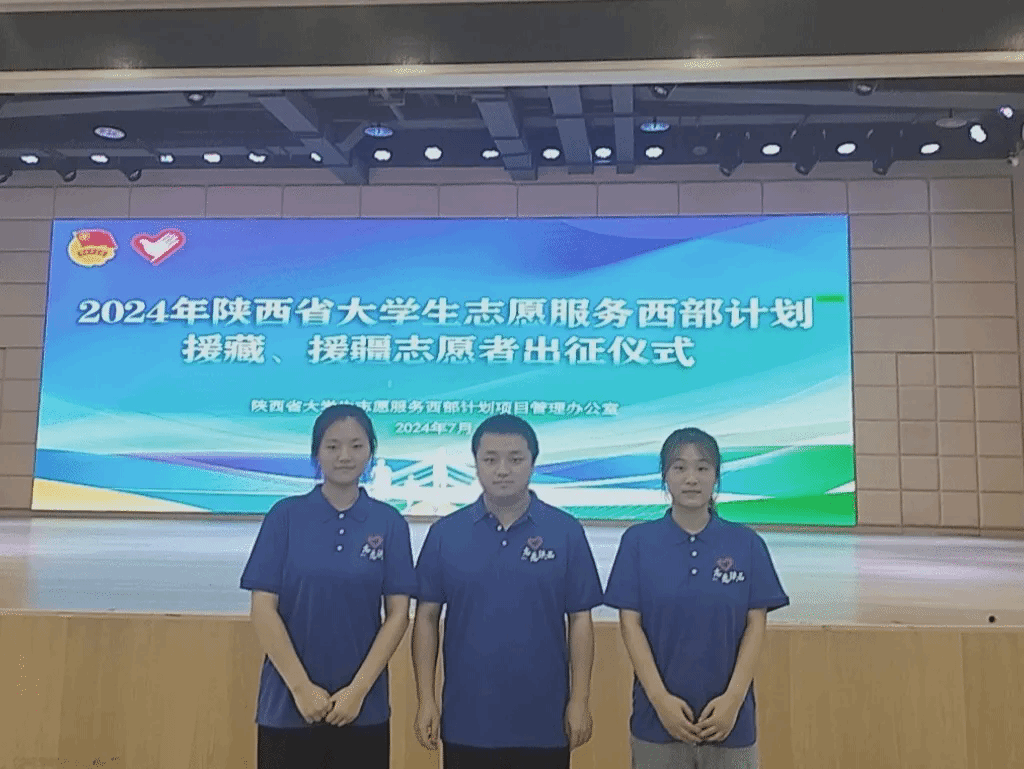 师范学院毛甜甜、历史文化旅游学院许明、马克思主义学院强伊菲作为我校2024年西部计划志愿者代表参与此次出征仪式。“到西部去,到基层去,到祖国和人民最需要的地方去!”这不仅是一句响亮的口号,更是他们心中最坚定的信念。他们将在这片热土上播种希望,收获成长,用实际行动诠释“奉献、友爱、互助、进步”的志愿精神。他们即将奔赴各自的工作岗位,未来的日子里,他们将走进乡村,走进学校,走进每一个需要帮助的角落,用知识的光芒照亮孩子们的前行之路,用知识的力量推动乡村的振兴发展,用温暖的双手搭建起民族团结的坚固桥梁。