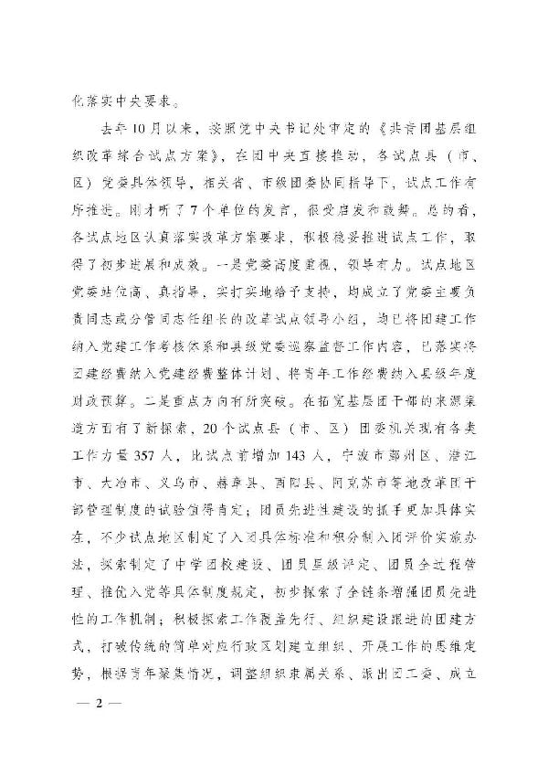 贺军科同志在全国共青团基层组织改革综合试点工作电视电话会议上的讲话